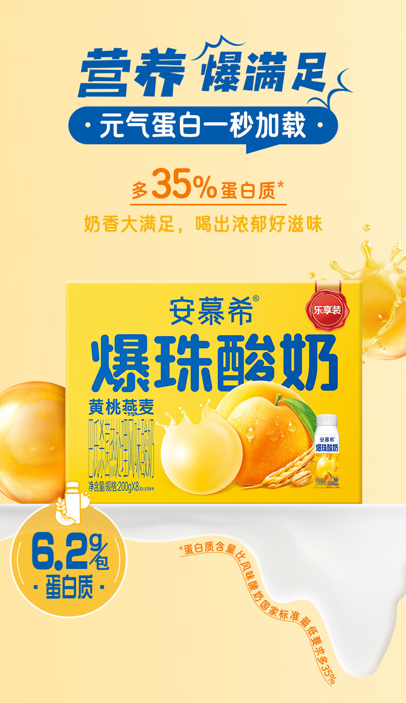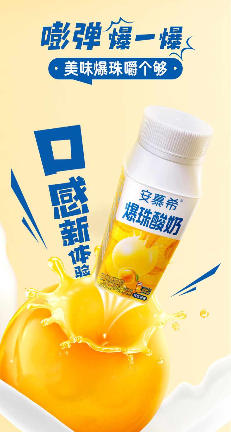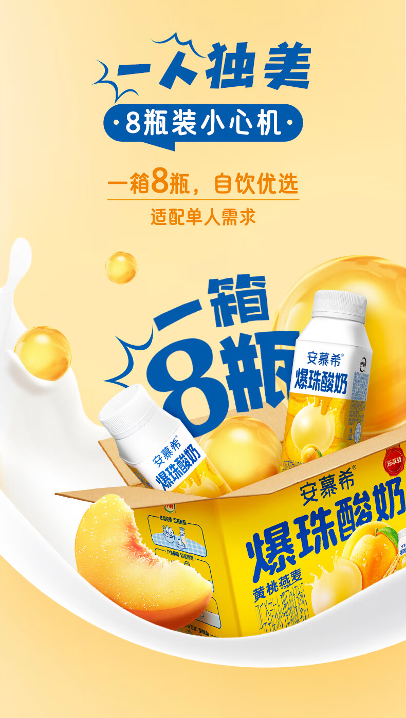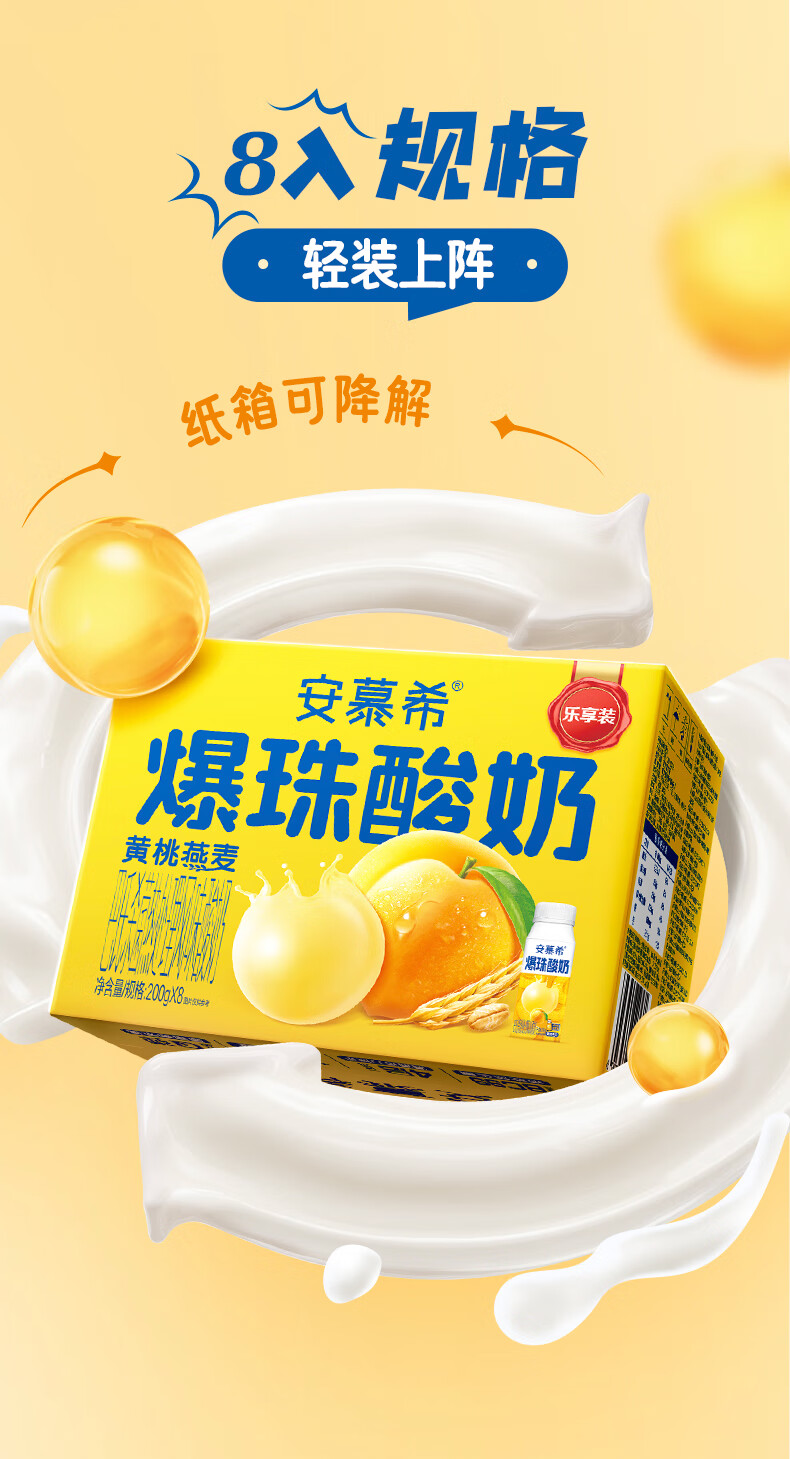 安慕希伊利黄桃燕麦爆珠风味常温酸奶整箱牛奶乳品 8月产 黄桃爆珠200gx8盒