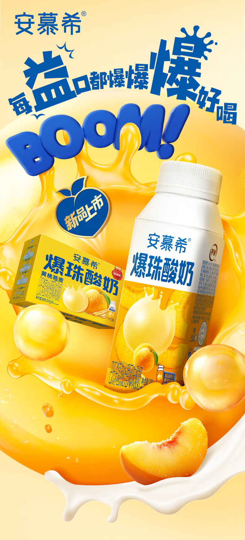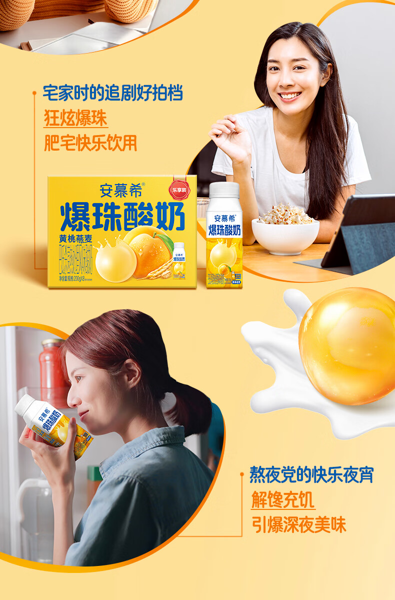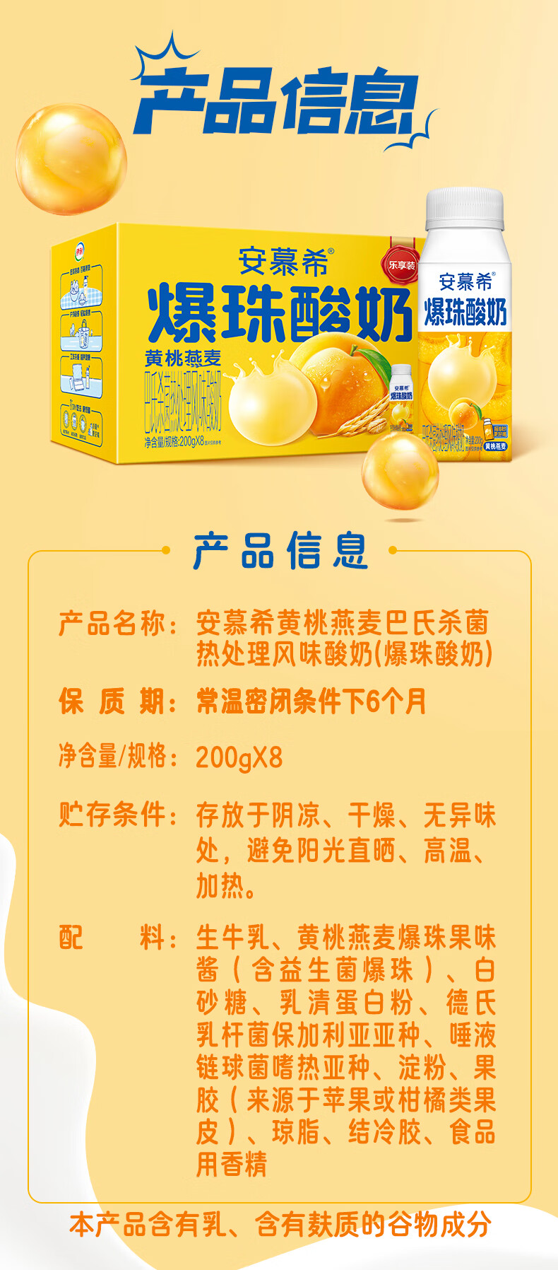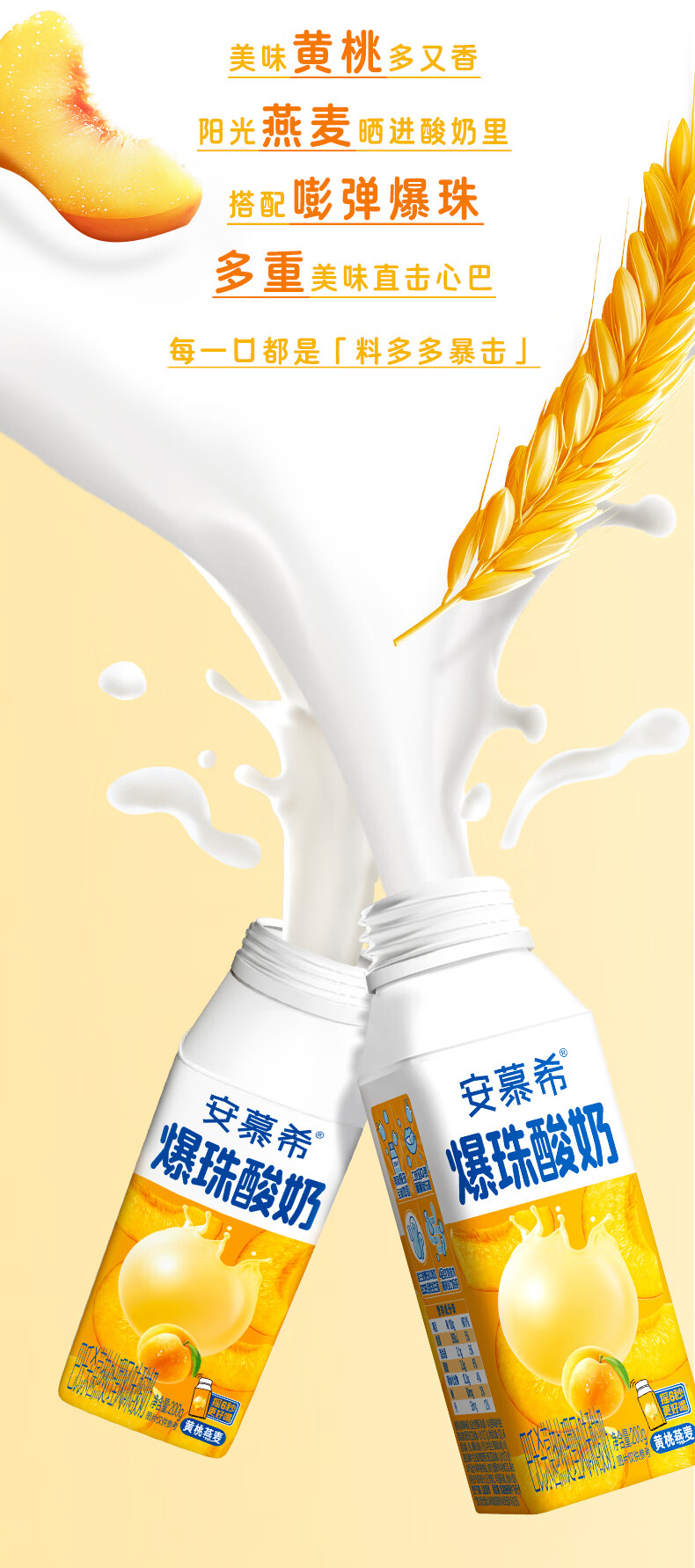 安慕希伊利黄桃燕麦爆珠风味常温酸奶整箱牛奶乳品 8月产 黄桃爆珠200gx8盒